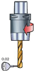最小刀具跳動量是確保成功鉆削的必要因素。跳動量不應超過左圖中的值。對準的同時必須確保: