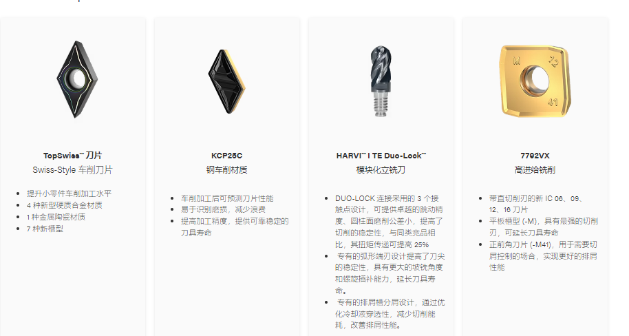 4 種新型硬質(zhì)合金材質(zhì)、1 種新型金屬陶瓷材質(zhì)以及 7 種新型斷屑槽型