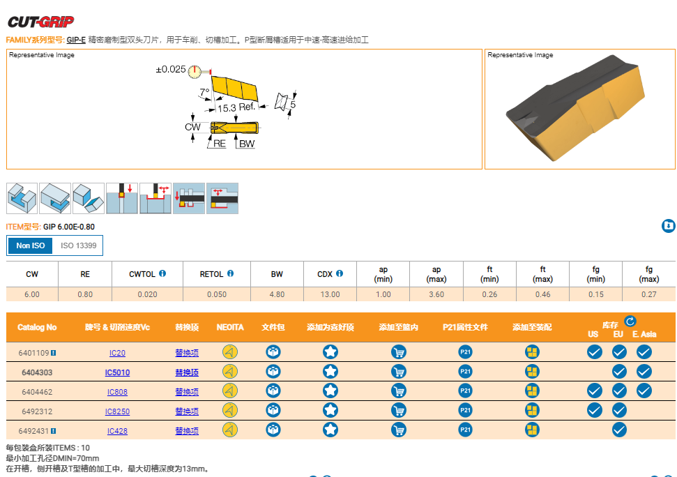 全新伊斯卡切槽刀片 GIP 6.00E-0.80 IC808 高耐磨性刀片