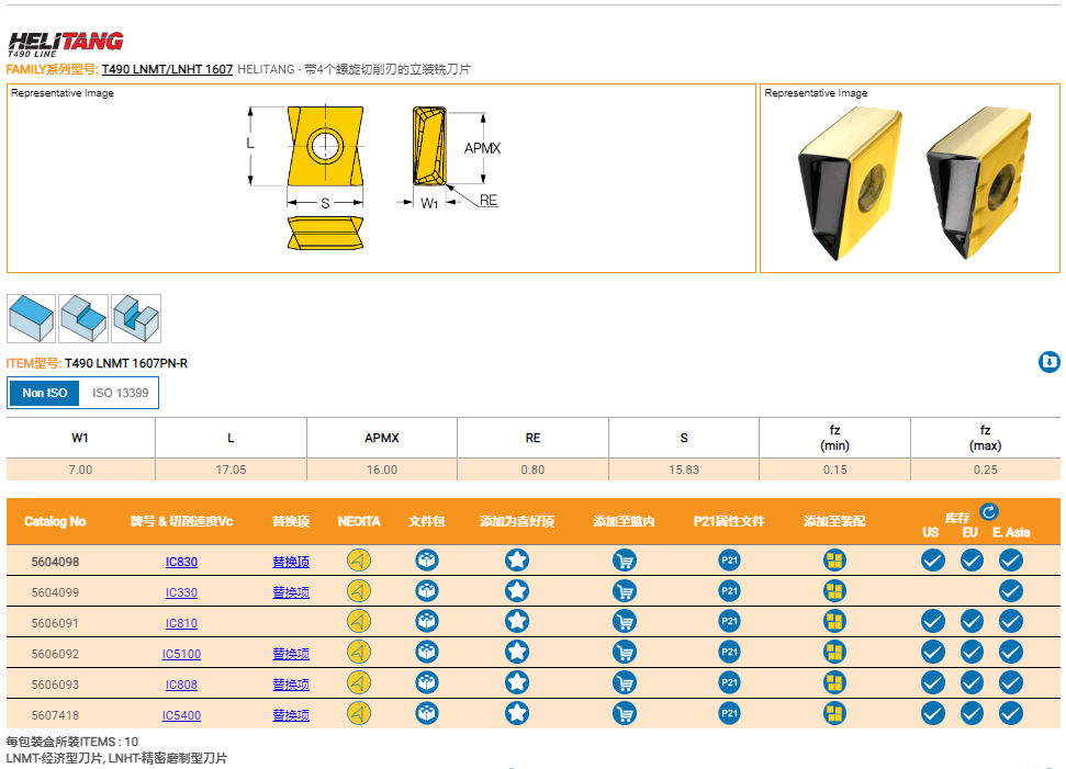 伊斯卡刀片 銑削刀片 T490 LNMT1607PN-R IC810 鑄鋼鑄鐵刀粒