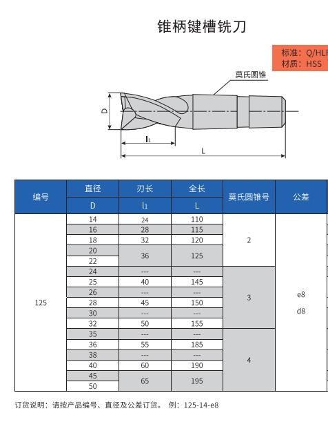 哈量錐柄鍵槽銑刀φ20 錐鍵槽銑刀 二刃高速鋼銑刀