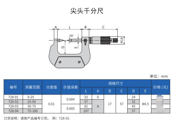 哈量千分尺 哈量尖頭千分尺0-25 25-50 50-75 75-100 精度0.01