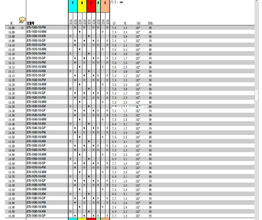 更多刀片型號: