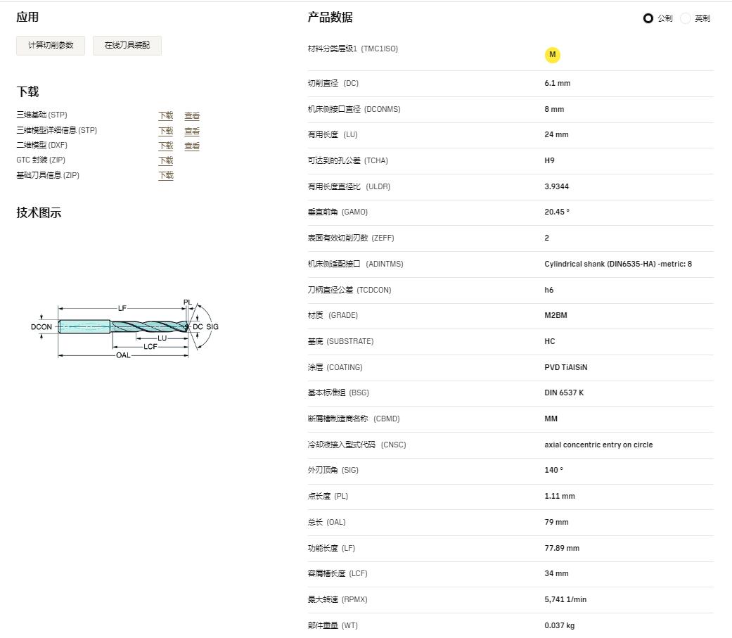 山特硬質合金鉆頭860.1-0610-024A1-MM M2BM整體鉆頭