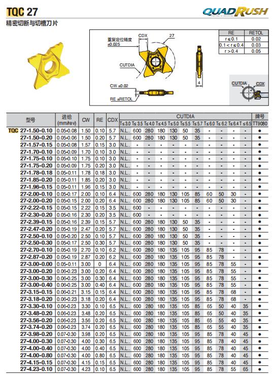 特固克刀粒 TQC 27-3.00-0.30 TT9080 切斷切槽刀片