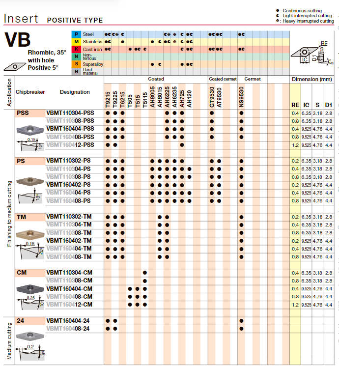 日本東芝鏜孔刀片VBMT110308-PS AH8015車刀片